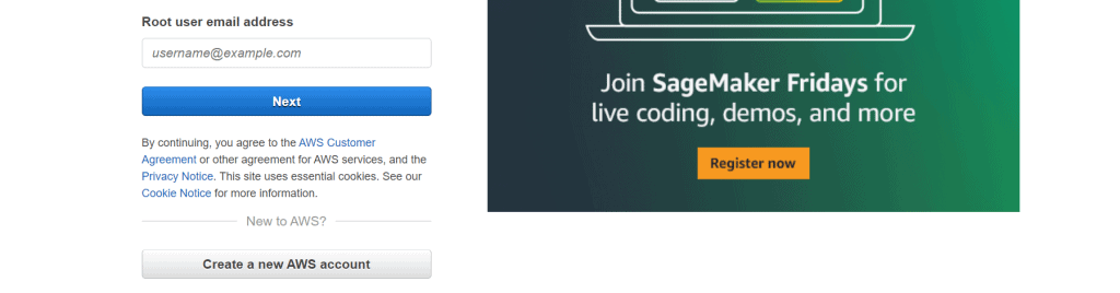 To provision a Cloud9 environment, we need an AWS account. If you already have an AWS account you can skip this section.