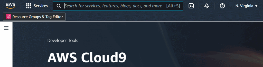 5. If you want to create your Cloud9 environment in any specific Region then change the region from top navigation bar. Here we are using N. Virginia (us-east-1)