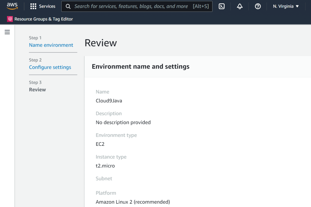 Following are the steps to provision a Cloud9 environment –