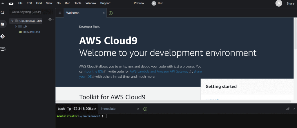 At this point, our Cloud9 environment is ready for us to help manage our Java based projects, including Spring Boot.