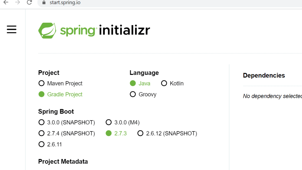 Step 1 – Navigate to Spring Initializer