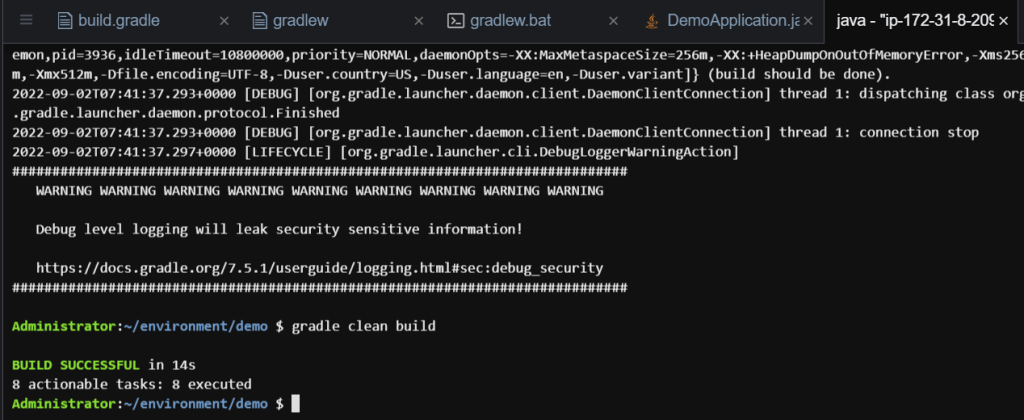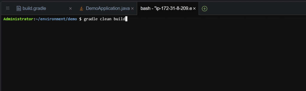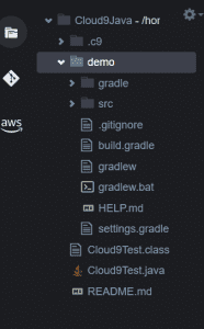 Step 2 – Select the demo folder on the navigator, right click and then click Open terminal here. This should open Cloud9 terminal. Them, run the below gradle command to build our application jar file.