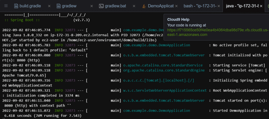At this point, we have successful built and run a spring boot web application in our Cloud9 environment. Yay!!